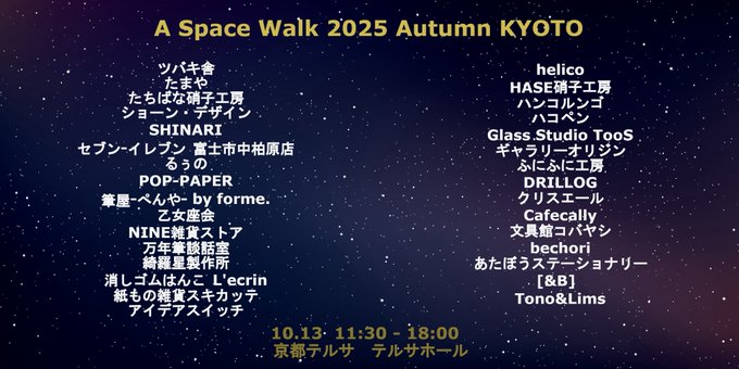 京都で開催の「A Space Walk 2025 Autumn KYOTO」に出展させて頂きます!