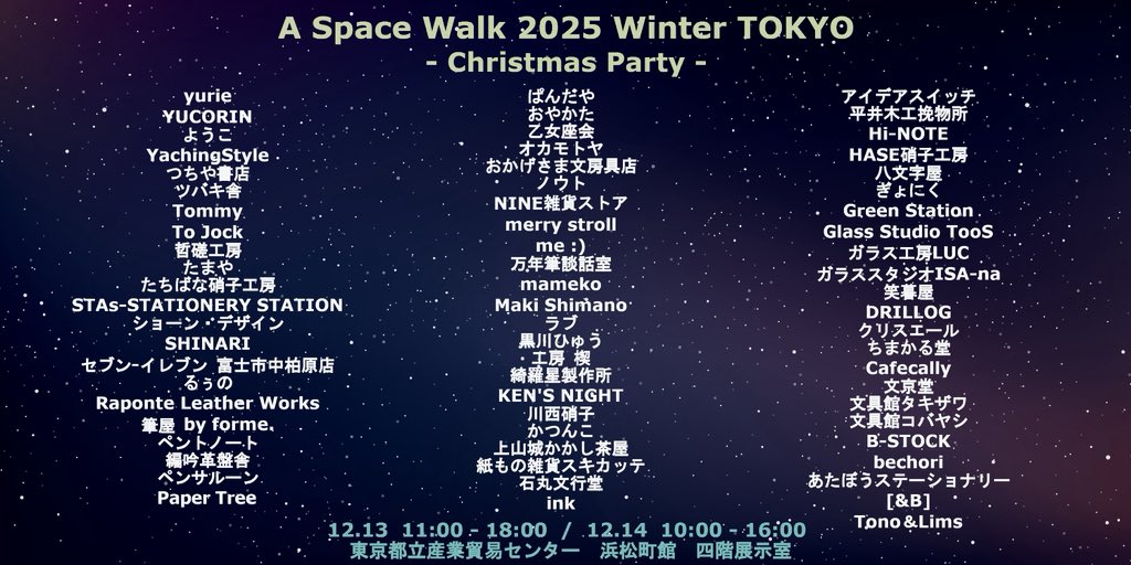 12月東京で開催される「A Space Walk 2025 Winter TOKYO」-Christmas Party-に出展いたします。